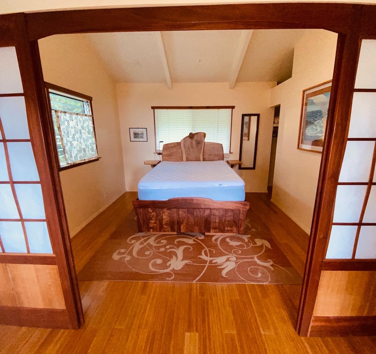 Relax in this beautifully designed custom built studio as you feel the Anuhea (a cool fragrant mountain breeze) coming down Hualalai mountain. Enjoy the high end finishes of hewn teak flooring, mahogany trim, custom built accents and natural stone bathroom. Located in the heart of Holualoa we are a 5 minute walk to Holualoa town with its local artist galleries and coffee shop. We are a 10-15 minute drive to Kailua-Kona and its beautiful beaches. Follow us on IG @anuheahouse!