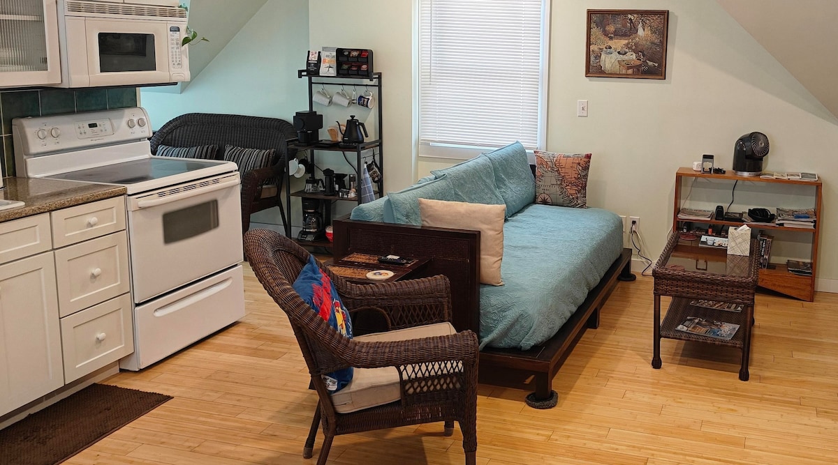 Entire, separate entry, second floor studio. Minimalist modern decor, nice clean small space with everything you need. We aim to have your stay be an enjoyable experience, greeting you with a clean home, ensuring you have what you need during the stay, and being available as needed. Approximately 5-10 from downtown KCMO, Power and Light, City Market. Within walking distance of a few local family owned restaurants and bars.
