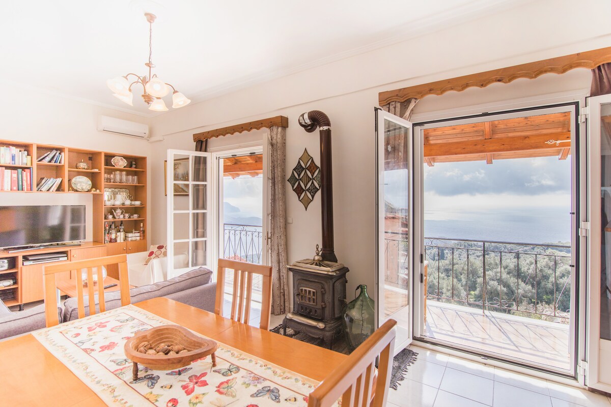 Enjoy having breakfast overlooking the ionian sea at the patio of sea la vie. Spacious house ideal for families , it's heartwarming nature vibe makes it a perfect couple's getaway too.Walking distance to restaurants, beaches , supermarket, public transit and anything else you needwithout having to rent a car. Free private parking just next to the house 2 min drive to main beach 2 min walk to closest beach 4 min drive to monastery Private jacuzzi with fantastic sea view, great for relaxing nights