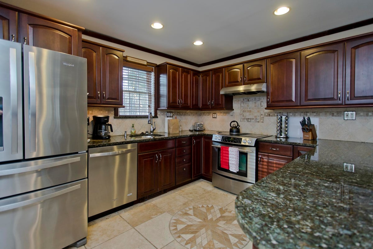 Enjoy your own special and separated section of this beautiful, modern colonial home. This beautiful home includes an oversize living room with a comfortable Queen Size sectional sleeper sofa, oversize Master Bedroom and very large bathroom with spa like jets. His and hers closets. Beautiful kitchenette. 50 inch T.V., Free WiFi. , comfortable dining and more, all for the comfort and convenience of our guests.