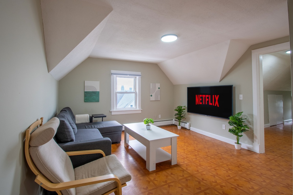 平均评分 4.97 分(满分 5 分),共 58 条评价加大双人床,带台球桌 – 温馨住宿,靠近MassMutual