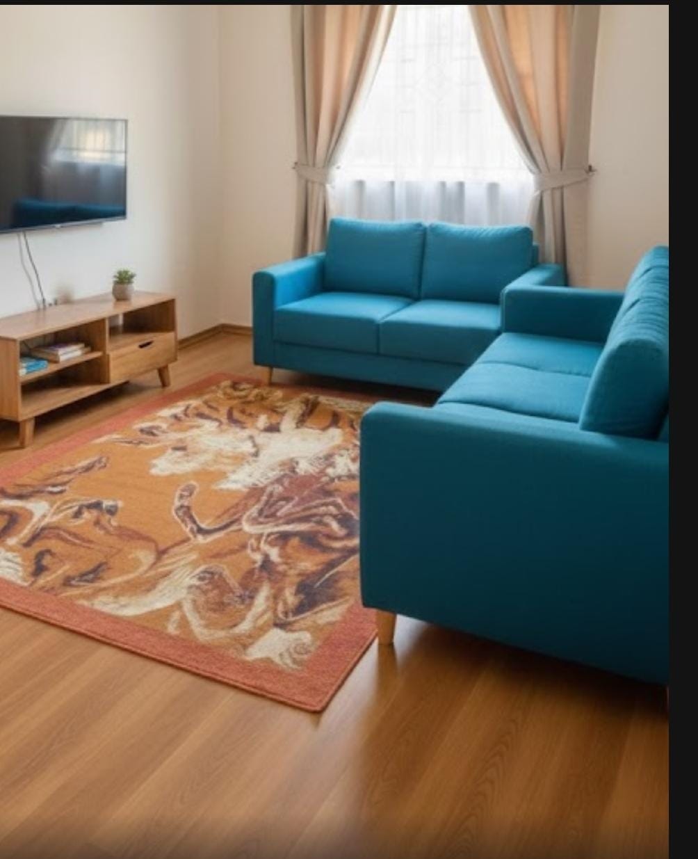 Kick back and relax in this calm, stylish space. It offers a cozy and modern aesthetic with a touch of elegance. Natural light flows generously through the sheer white curtains, creating an airy and relaxing atmosphere. Neutral tones on the walls and flooring create a calming backdrop, perfectly balanced by subtle art and tasteful lighting. This space is ideal for couples, solo travelers, or friends looking for a peaceful, stylish retreat with comfort at its core.