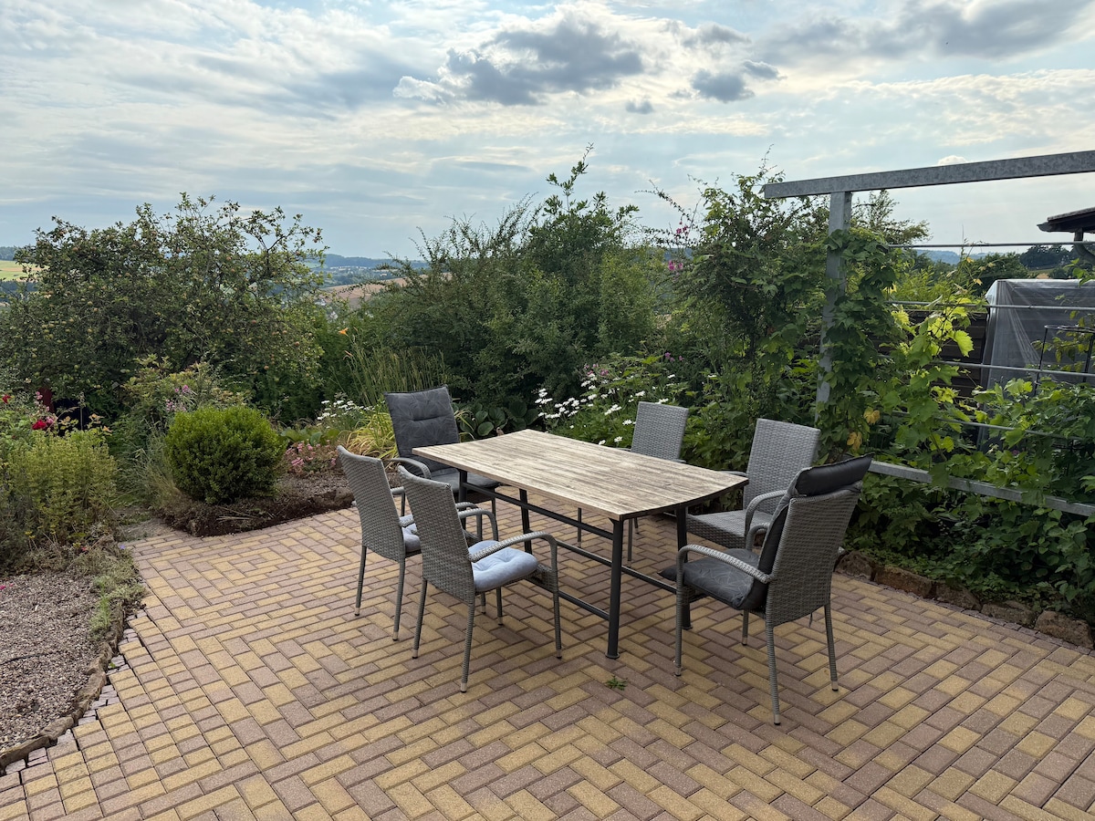 Liebe potenzielle Gäste: Ob auf der Durchreise, für eine kleine Auszeit oder aber für länger - unsere Wohnung ist schnell erreichbar und ein guter Ort, um abends zu entspannen - z.B. auf dem Balkon mit Weitblick. Das Schlafsofa im Wohnzimmer ist sehr bequem, sodass man gut in zwei Räumen schlafen kann. Im Ort gibt es ein schönes Freibad und gute Gastronomie - drumherum viel Wald. Unser Café hat wochentags ab 6 bzw. am Wochenende ab 7 Uhr Frühstück.