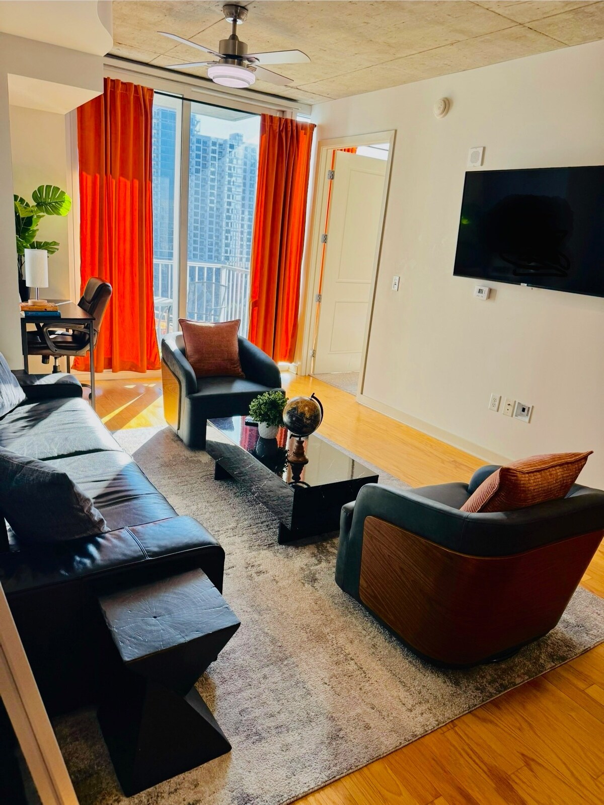 Located right in the heart of Midtown is this contemporary apartment with everything you could need for a relaxing inner city stay. The apartment features two gorgeous bedrooms with city views, walk in closets and modern bathrooms, a gourmet kitchen and sun-filled living with a balcony. Stay just 10 mins from everything the city has to offer, with easy access to Downtown and all the top shopping, dining and entertainment of Atlantic Station, Lenox mall, Buckhead shops.