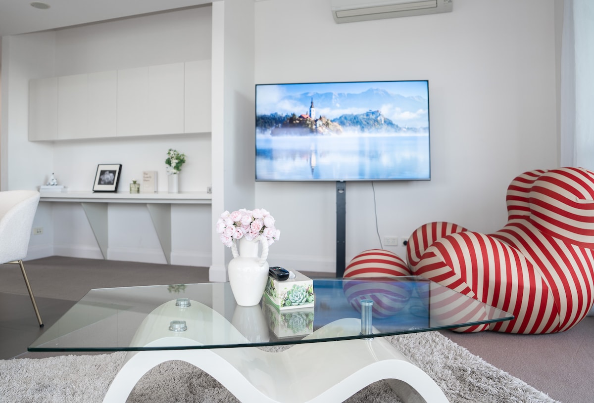 Best location in the heart of Top Ryde - Comfortably sleeps 4 people! - Full Kitchen, Laundry and appliances - 5 min walk to Top Ryde Shopping Centre & Restaurants - 5 min walk to Cinema, arcade and mini golf - 2 min walk to bus stops - Around 7 - 10 min drive to Macquarie Park, Rhodes - 13 min drive to Sydney Olympic Park - FREE SECURE PARKING - Portable cot, changing table and baby bath available at request Airport transfer available at discounted rate if required