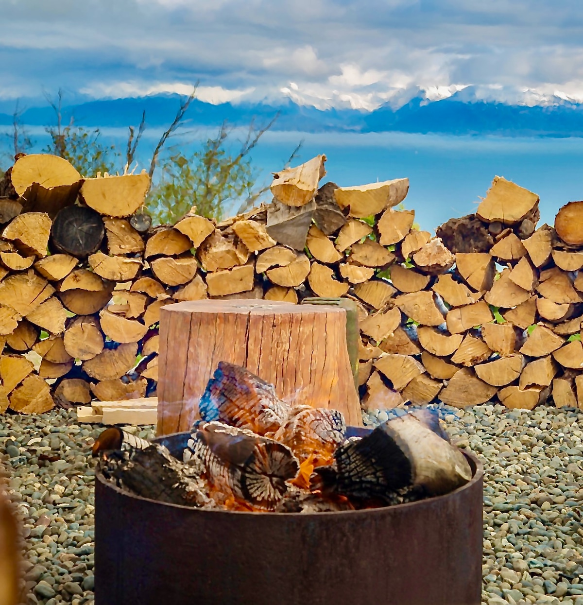 Welcome to our handcrafted home! We are away fishing and welcome you to enjoy the fruits of our labor. Bask in the morning sun on our spacious deck overlooking the gorgeous bay and it’s snow capped mountains. Cook your days' catch on the bbq and eat on our handmade picnic table. Finally, after your day of hiking, come soak in our hot tub and sip on some local wine while the sun sets over the mountains. Lastly, let the sound of our stream lull you to sleep in our custom artistic home!