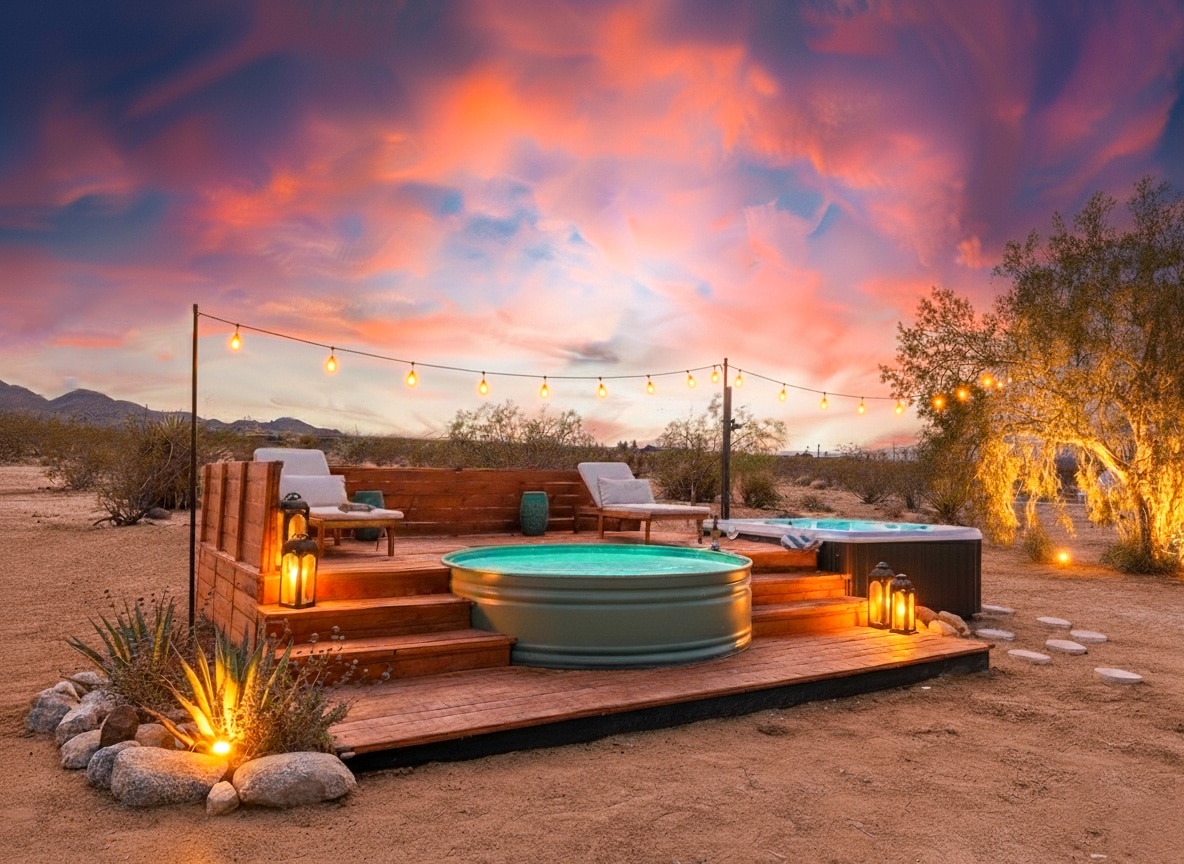平均评分 4.9 分(满分 5 分),共 208 条评价约书亚树沙漠绿洲:泳池、热水浴缸、火坑!