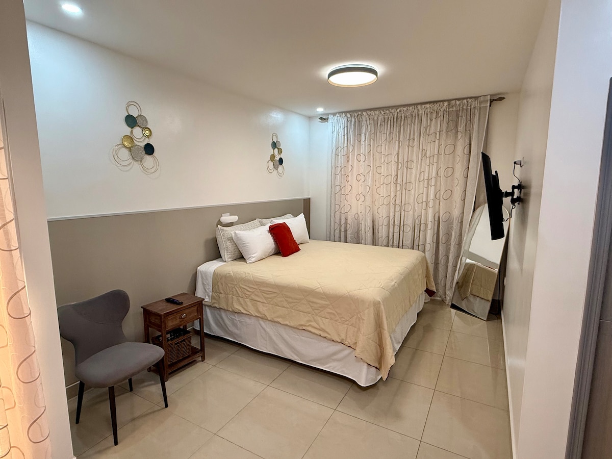 Apto #10, maximo de 4 personas adultas (cama matrimonial) y 2 niños (sofá cama queen). Parqueo en garage para 1 vehículo. Un espacio diseñado para viajeros que buscan limpieza, comodidad, estilo y la mejor ubicación en San Pedro Sula. Nuestras habitaciones son similares a las de un hotel de cadena a una fracción del costo. Ubicado en una zona céntrica, segura, tranquila y rodeada de los mejores restaurantes, cafés, supermercados y servicios de la ciudad. Guardia de Seguridad las 24 horas.