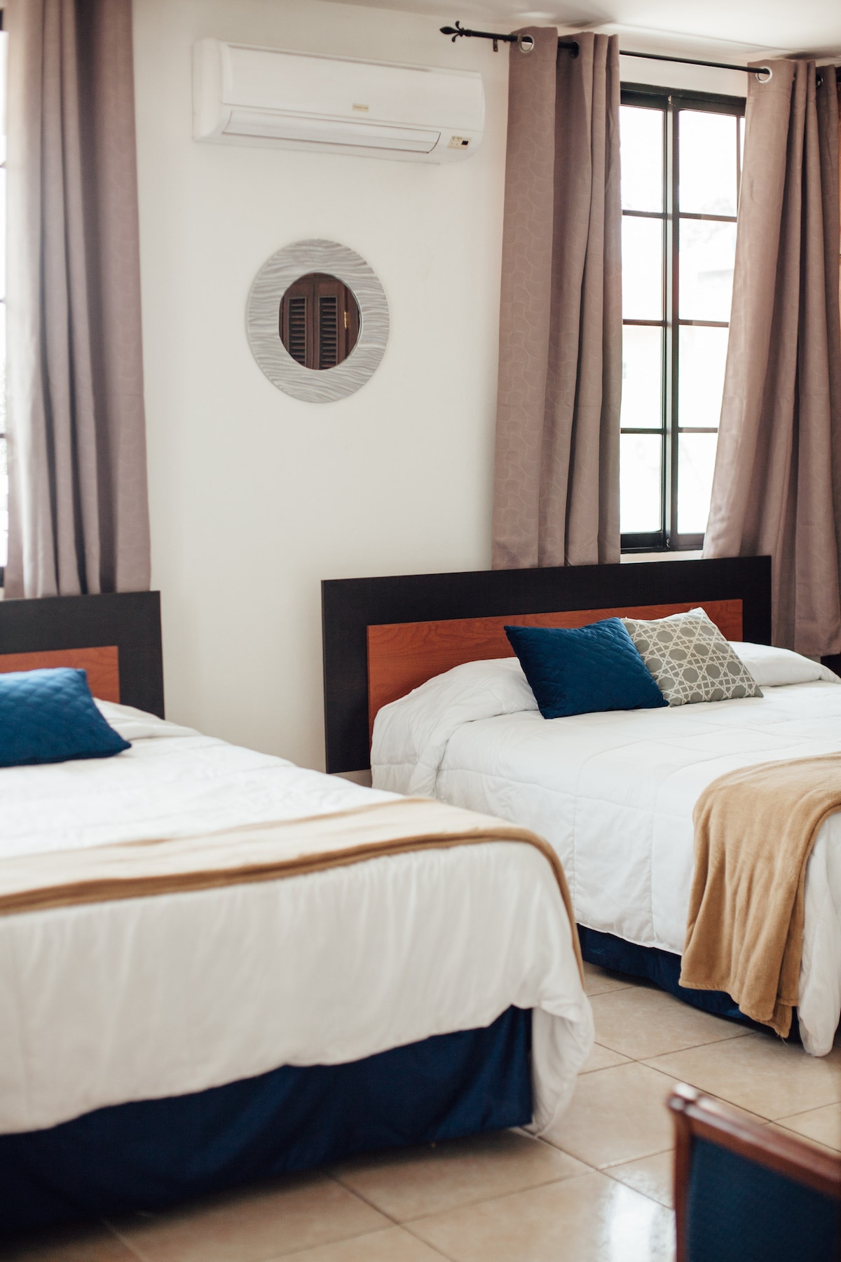 Our room is private and has two Queen beds, a wide and private bathroom with hot water, a 32" LED TV with cable, closet, wi-fi, and air conditioning. We are located near the City Mall, the Zona Viva, the Grand Central Bus Station, Copantl Hotel & Convention Center, hospitals, banks, the downtown, among others. We also have an energy plant.