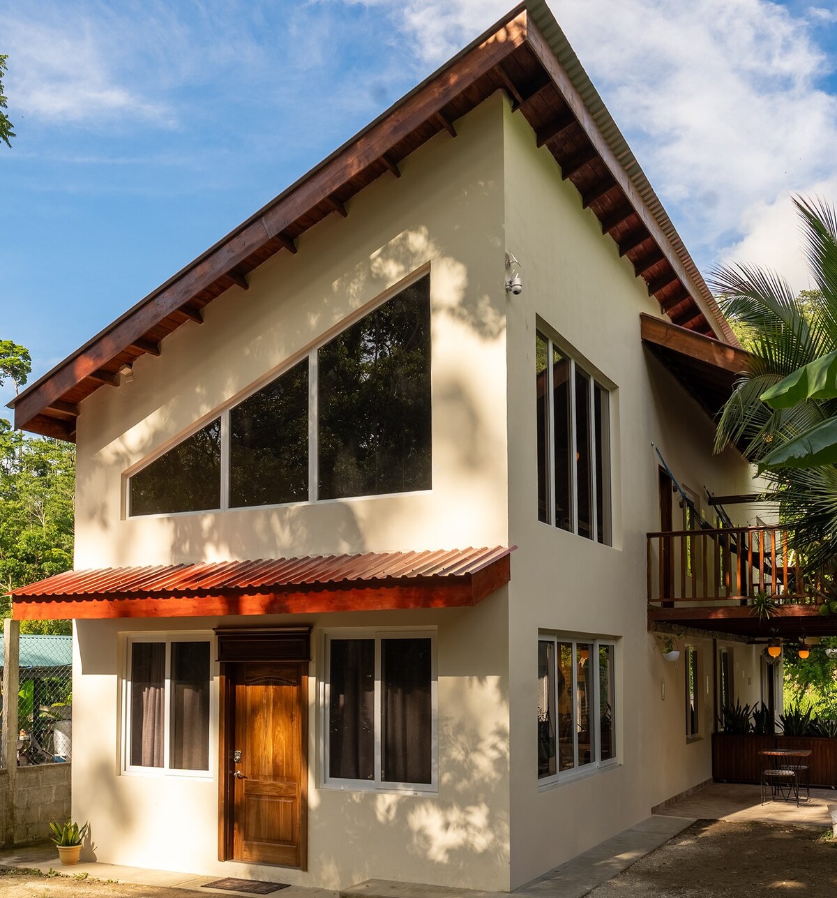 Built in the foothills of the Merendon mountain range, this chalet offers a breathtaking ocean view on the front, and relaxing jungle view on the back (keep your eyes open for toucans!) Let the private road take you up the hillside to the property, where you will enjoy a peaceful and quiet experience. Entertain guests with the outside kitchen/bar, take a 15min walk to the beach, or simply enjoy a morning coffee from the upstairs deck while you look at tropical birds, this house has it all.