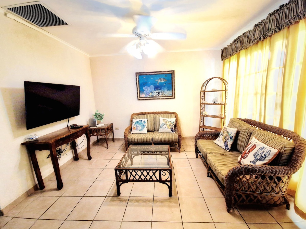 Hermoso apartamento en Roatan, a 16 min. a playa de West Bay, a 2 min. Del aeropuerto, y 10 del ferry. Apartamento amueblado y acondicio nado para que nuestros huespedes disfruten del confort, luego de relajarse en las playas de arena blanca. a 2 min gasolinera y tiendas de coveniencia, 10 min a pie al puerto de cruceros, canopys, zona comercial. E historica; y sitios de interes. Zona muy tranquila y segura para descansar.