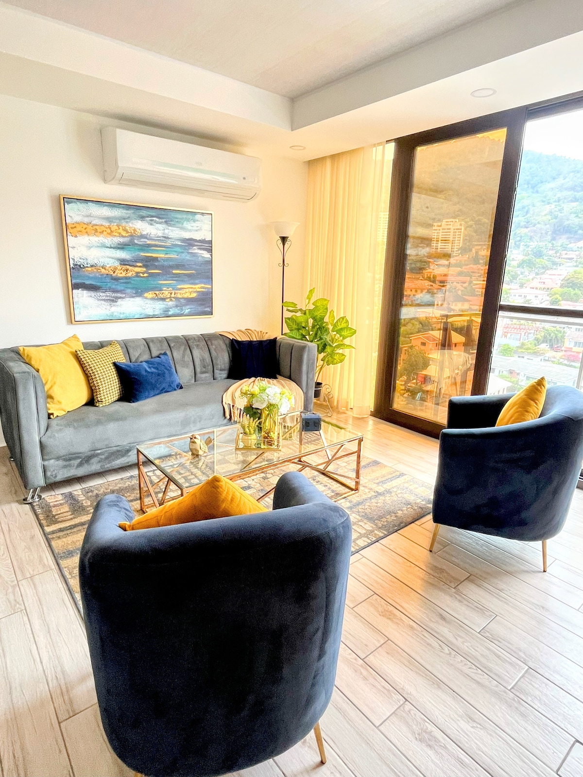 Ubicado en Tegucigalpa en una de las zonas más exclusivas y céntricas. Cuenta con todas las comodidades y con una excelente vista de toda la capital. -Aire acondicionado sala y dormitorio. -Smart Tv de 55” con sistema de teatro en casa y Netflix (Sala). -Smart Tv 42” y Netflix (Dormitorio). -Chimenea Interna. - Completamente amueblado. -Balcón con vista a la ciudad. -Gimnasio. -Area social. - Estacionamiento gratuito. **No son permitidas visitas.**