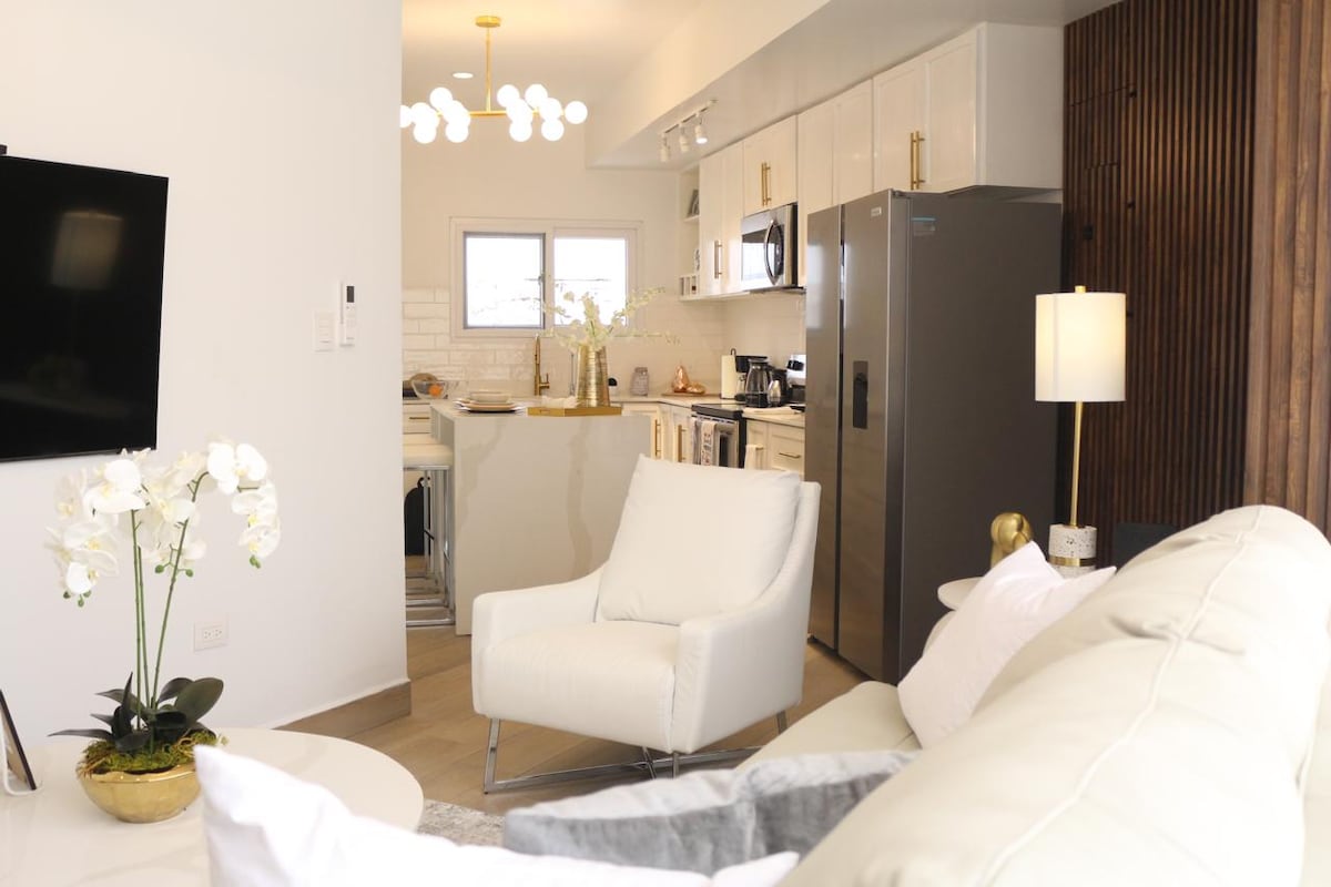 Apartamento en segunda planta con acceso autónomo. 🚙 1 traslado gratis al aeropuerto, llegando en 15 minutos aprox.. Cuidamos el planeta con paneles solares generando energía eléctrica. Ambiente seguro y familiar. Acceso a la residencial mediante código QR. Seguridad privada, muro perimetral. 🚙Baja tarifa de transporte local y nacional en camioneta si lo necesitas. 🚍Transporte público cerca A 5 minutos Despensa F, farmacia, expreso americano. 🚸 Acceso a área recreativa Visítanos
