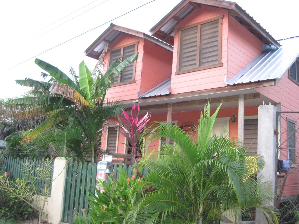 We are in the middle of the fishing village of West End on the beach but with a beautiful tropical garden at the back. This simple room, in our main house, has access to shared bathrooms and a shared kitchen. We have a great dive shop, Native Sons, right in the front garden and do great rates for our guests.