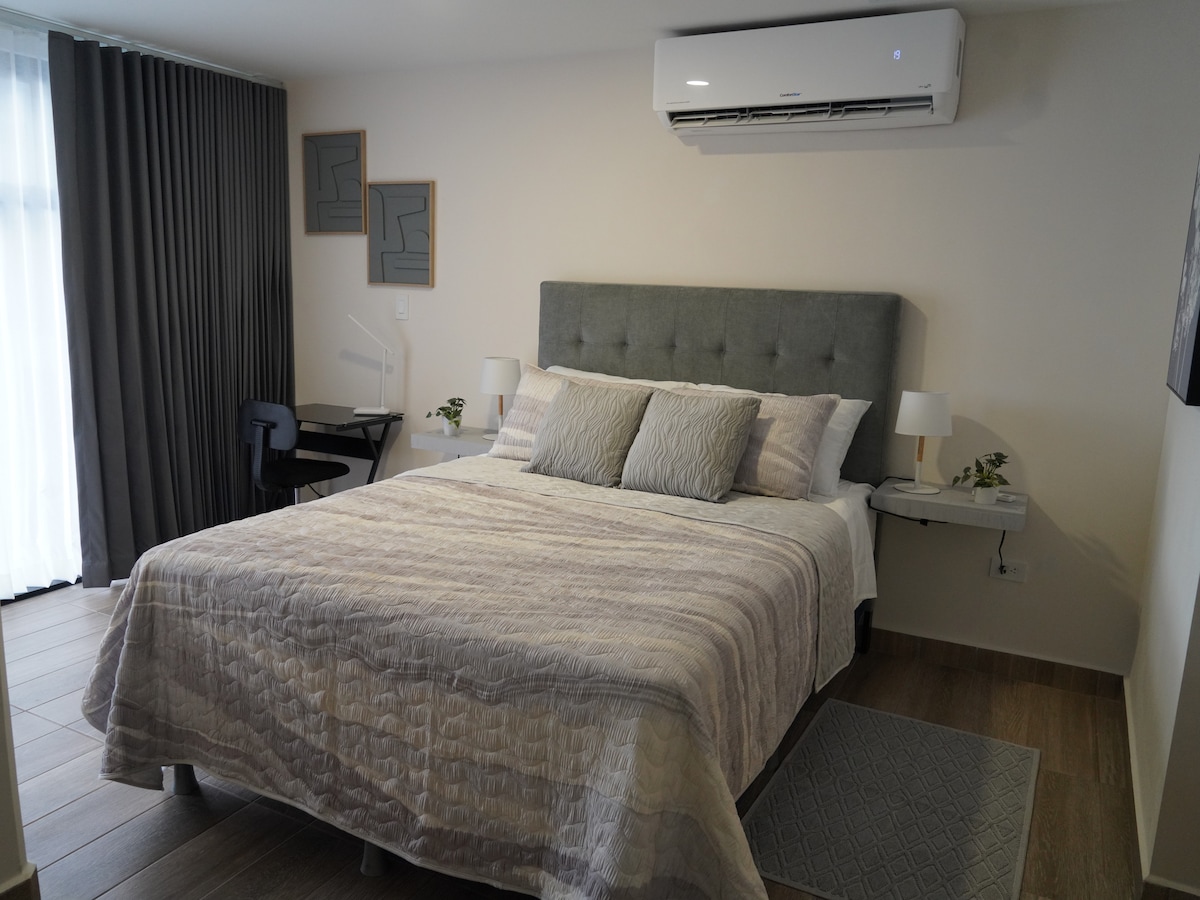 Designed for those seeking comfort and privacy during their stay in San Pedro Sula. It features high-speed Wi-Fi, a comfortable workspace, and private parking, making it the ideal choice for remote work, business trips, and short or long stays. Its strategic location provides quick access to shopping areas, restaurants, and the city's main thoroughfares. A space designed for those who value modernity, quality, and a stress-free experience