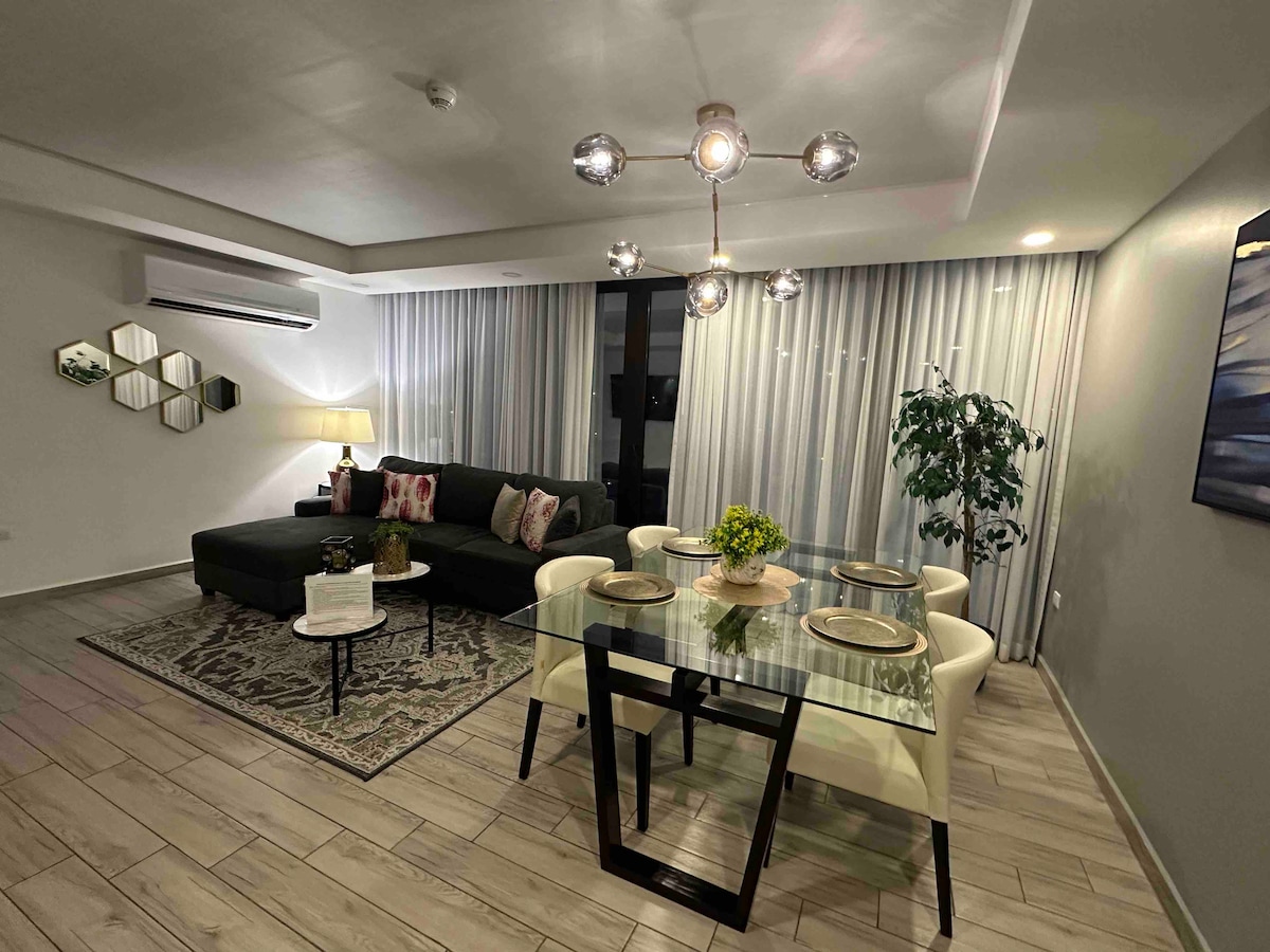 Te encantará hospedarte en este lugar 😊 es único tiene su propio estilo, está automatizado, controlas todo desde tu comodidad con Alexa, ideal para parejas o ejecutivos que buscan un lugar moderno para trabajar y descansar desde casa en una cama King super cómoda, puedes ver tu partido de fútbol en el TV de 65 pulg. con Netflix, Disney, Amazon Prime, perfecto para una noche de películas.🍿 Está ubicado en el 1er piso de la torre 2 ✋Favor leer los reglamentos antes de reservar.