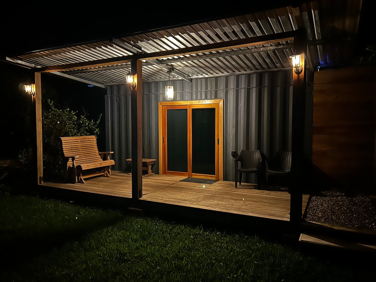Live in a shipping container! This converted 40ft shipping container has everything you need to feel at home. The bedroom has a ceiling fan. Optional a/c is an extra $10/night. Located in our friendly hostel, just a few minutes' walk from the botanical gardens and the dolphins at the institute of marine science, and a 3 min walk to the closest beach access with excellent snorkeling a 200 meter swim out. If you'd like to check out the nightlife, West End is just a few minutes away by taxi.