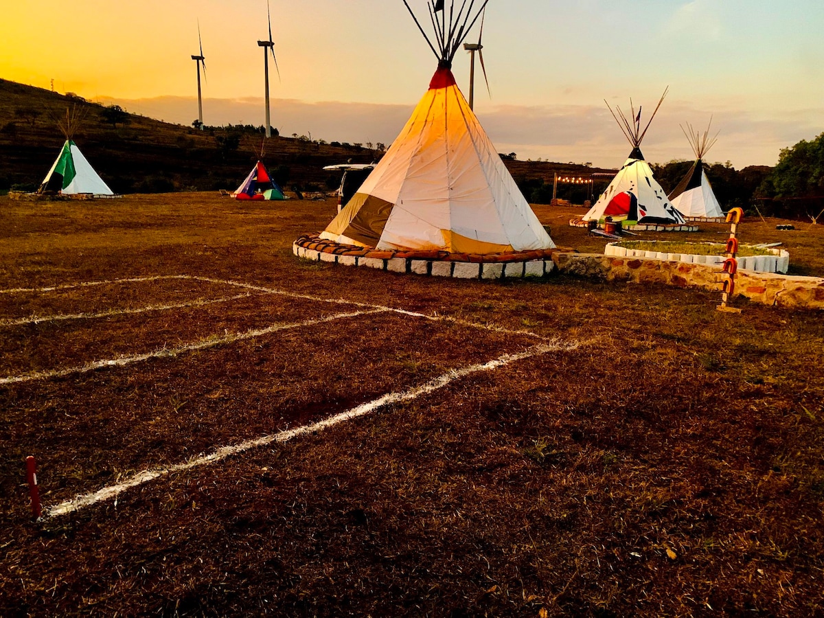 Quédate en este alojamiento único y disfruta de los sonidos de la naturaleza. bajo las eólicas con un clima frío rodeado de naturaleza al estilo Indio en sus cálidos teepes con seguridad y un amplio lugar para pasar en amigos y familia
