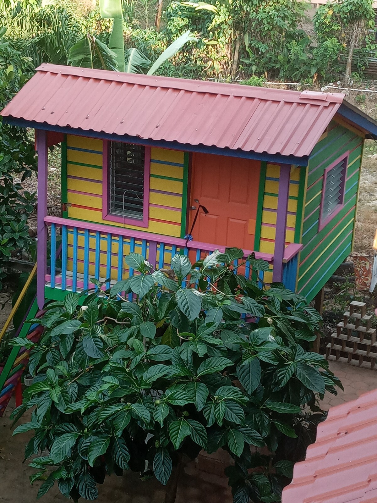 This cozy casita (studio) has a warm tropical feel. It's near the pool but not too close. It has a fully equipped kitchenette with everything you need to prepare meals and keep you're drinks cold. The bathroom has a large shower and plenty for room you to get ready for your night in West End. Sip on your morning coffee on your private deck and watch the wild macaws fly in for their morning visit. The lush jungle is all around you with the breezes to keep you cool while you relax in the hammock.