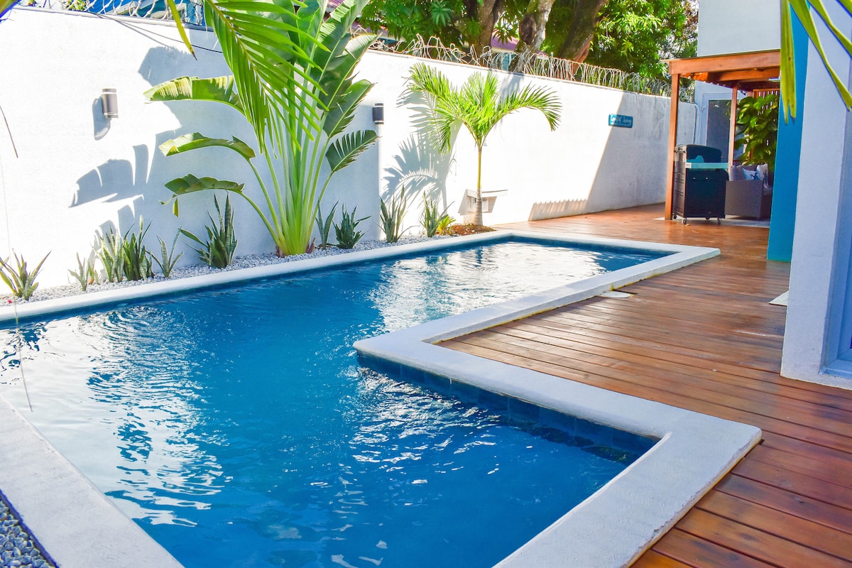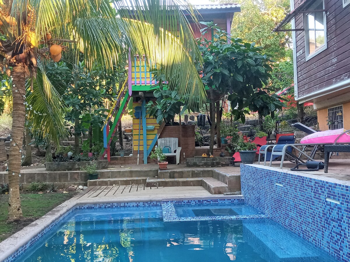 This cozy casita (studio) has a warm tropical feel. It's near the pool but not too close. It has a fully equipped kitchenette with everything you need to prepare meals and keep you're drinks cold. The bathroom has a large shower and plenty for room you to get ready for your night in West End. Sip on your morning coffee on your private deck and watch the wild macaws fly in for their morning visit. The lush jungle is all around you with the breezes to keep you cool while you relax in the hammock.
