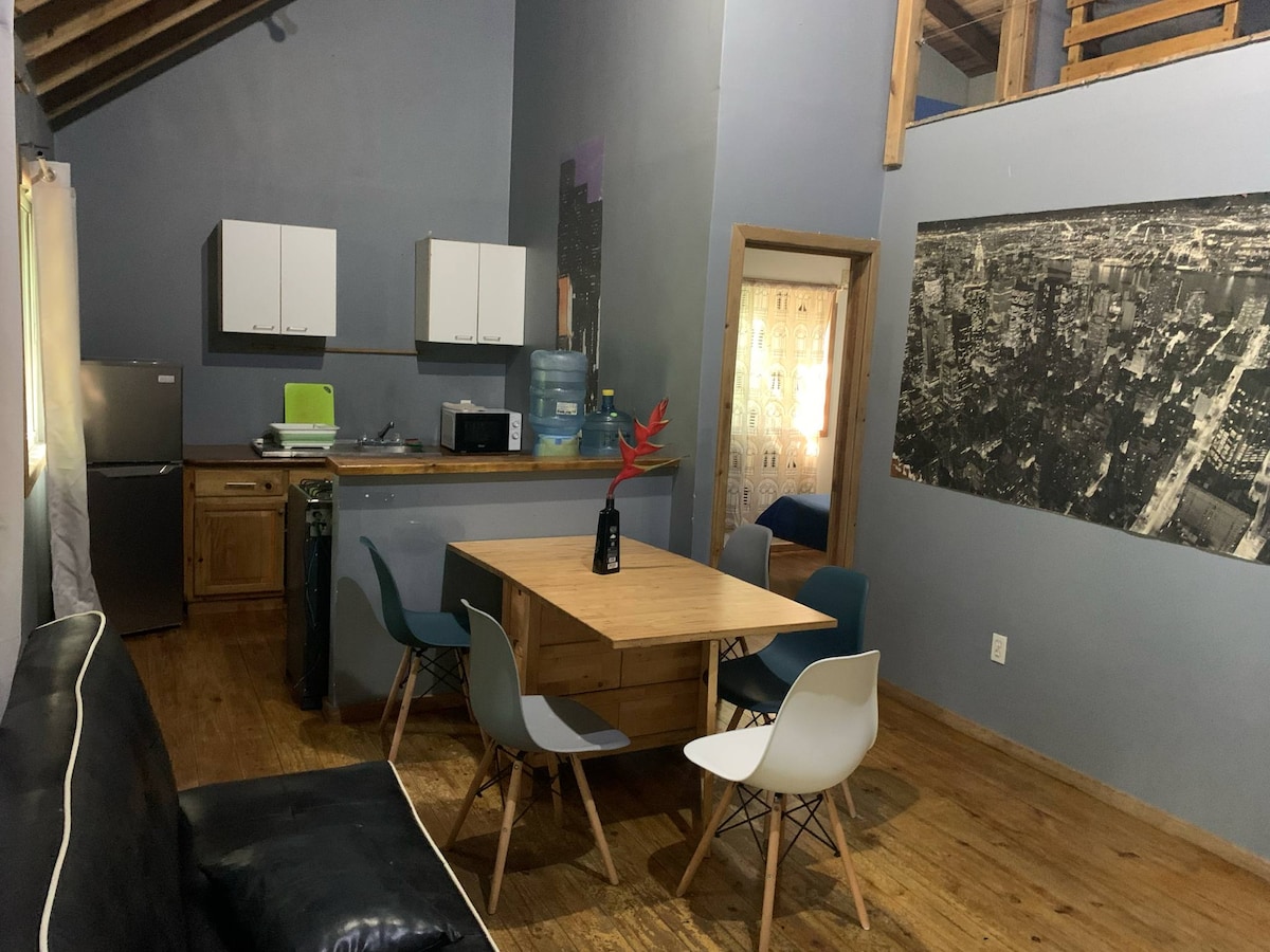 Spacious 3-bedroom loft apartment . Safe and quiet location. Close to Mango Inn resort and about 8 min. walk to the main dock/center of town. AC in each bedroom, Starlink Internet hot water, laundry area and a big outdoor space with bbq and Pizza oven and a pool.