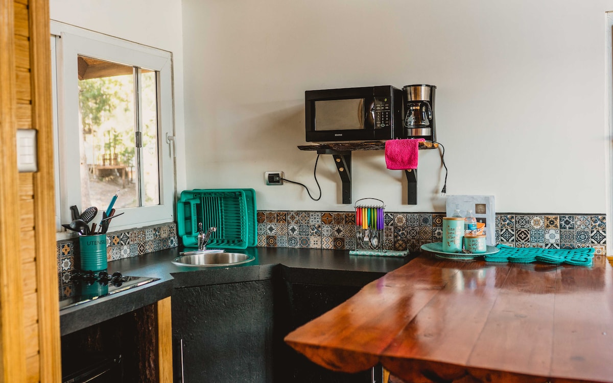 This one of a kind, nature inspired -tiny house- will surely captivate your senses and imagination. It´s a unique new experience! You´ll enjoy a beautiful property with premium amenities. Open, colorful and all natural landscapes. Close to the airport, restaurants, malls, drugstores and hospitals. Ideally located in Campisa private community, next to our eco-reserve mountain park, where you can go for a hike, go birdwatching or just enjoy the stunning scenery. Get ready for a memorable 5☆ stay!