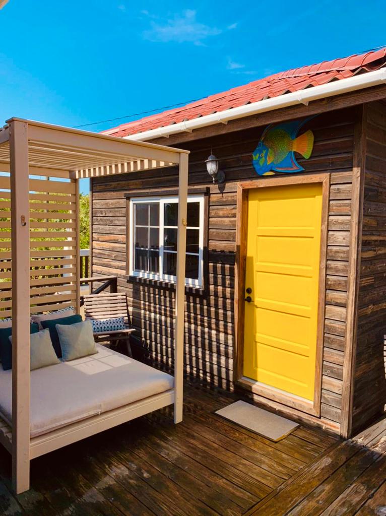 This wee cabin is bright & cool, located in a quiet residential area of Caye Caulker on our tree-filled property. Equipped with coffee/tea facilities, mini fridge, A/C, fan, hammock, WiFi, unlimited drinking water, Smart TV w/ Netflix logged-in, and best of all - BIKES included! BBQ grill & picnic tables in the yard which is shared with us and any other guests. We have five rentals on our property. We live on site with our two daughters, two dogs, and two cats.
