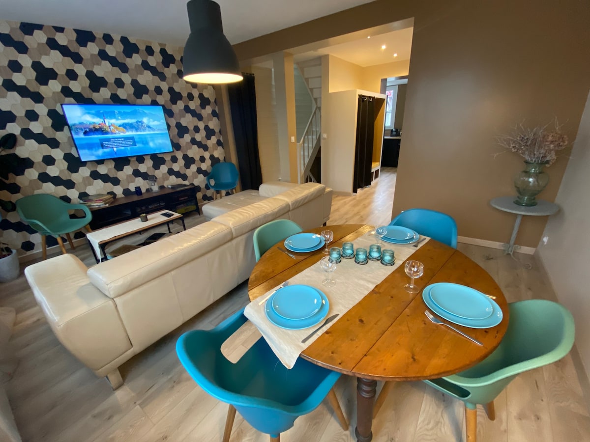Bienvenue dans cette charmante maison refaite à neuf en plein centre-ville! Dès votre arrivée, vous serez séduits par la décoration en bois de l'entrée. Dans cette maison, vous vous sentirez comme chez vous. Vous pourrez profiter de la terrasse, et vous pourrez vous divertir dans la salle de jeu comprenant baby foot, arcade vintage de 1600 jeux et jeu de fléchettes. Les places gratuites facilitent le stationnement. Tous les commerces se trouvent à moins de 300 mètres.