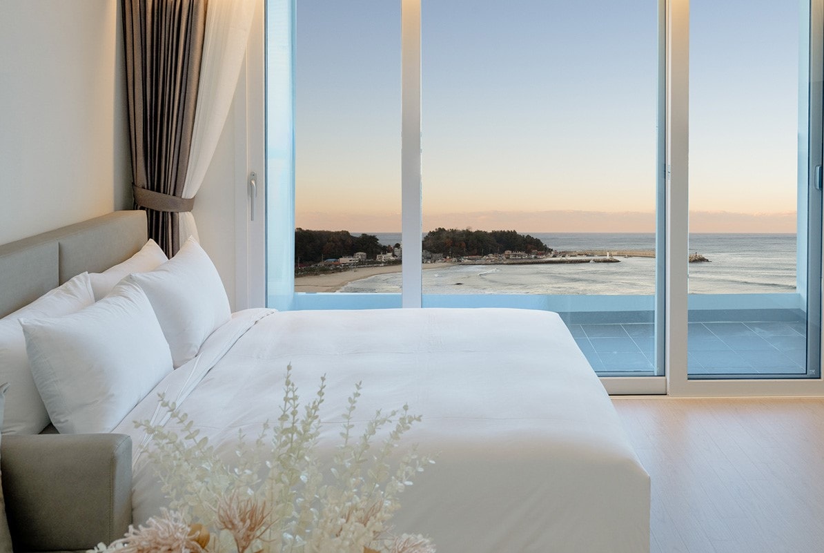 깔끔하고 아늑한 인테리어, 고층과는 다른 중층만의 시야가 꽉찬 환상적인 바다와 모래 해변, 파노라마 파도뷰로 온 마음을 힐링할 수 있는 매력적인 숙소입니다. 🏖🏝🌊 서핑들의 성지 양양 죽도해변, 인구해변과 이어져 있으며 데크길 따라 산책하다보면 양리단길 도착~!🛤 또한 발코니를 통해 동해의 장관, 일출을 숙소에서 감상하세요.🌅🌌 발코니에 등기대고 앉아 커피 한 잔의 여유도 좋답니다. 여기야말로 진정한 커피 맛집👍☕️☕️☕️ 양양 종합여객터미널에서 22분, 강릉 시외버스터미널에서 37분 거리에 위치하고 있습니다. 편안함과 안락함을 선사하는 객실로 더블베드로 구성되어 있습니다. ▶비대면 체크인(숙소의 키패드 번호 입력하여 입실 가능) ▶전문 세탁소에서 고온 살균된 침구 제공 ▶소독제, 살포를 통한 객실 소독, 방역 ▶취사 가능(냄비, 프라이팬 등의 조리도구와 식기제공) ▶넷플릭스(본인 계정으로 로그인하여 시청) ▶메세지 응답 시간 : 오전 09:00~오후 11:00