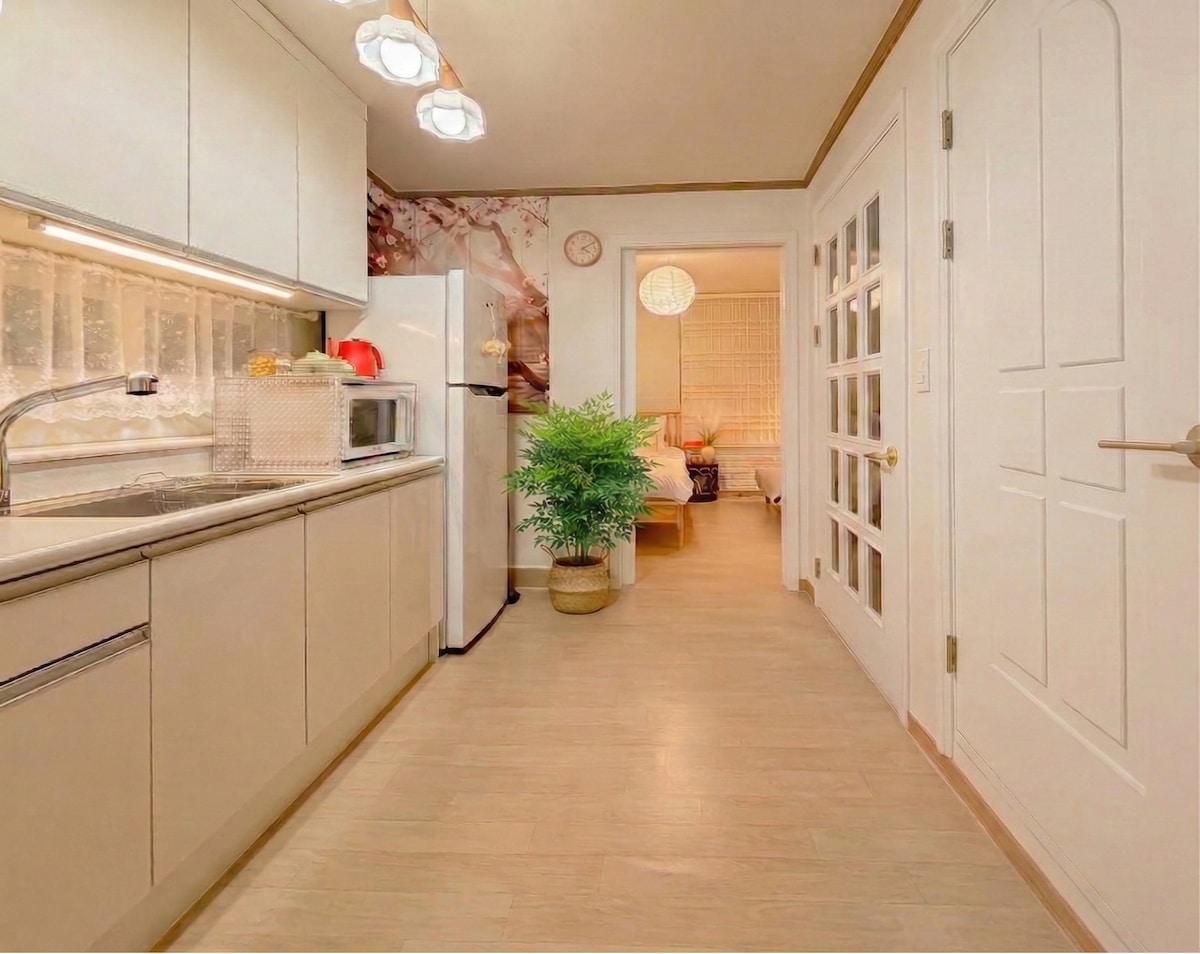 [优惠] 从弘大入口站步行 5 分钟可达#机场铁路线行李寄存处#距离红路 1 分钟,距离光化门 10 分钟#安静的家庭式住宿,最多可容纳 5 人
