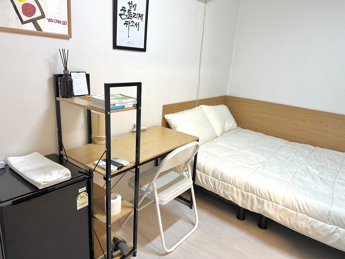 - 房间7坪,床135*200,书桌1300*600,可以保管行李 - 具备可办公、可做饭的简单餐具,智能电视 50 英寸 - Wifi, 大衣柜, 大冰箱, 洗衣机, 晾衣架, 吹风机, 毛巾, 纸巾, 水 收费停车 洗发水、沐浴露、护发素、香皂 - 从仁川机场到宿舍正门乘坐机场巴士时56分钟(包括6分钟步行) - 从宿舍可以走着去的地方 大创(6分钟),OLIVE YOUNG(3分钟),时代广场(3分钟),汗蒸房(6分钟) -从宿舍坐地铁去的地方 (附近有 1 号线永登浦站、2 号线文来站、5 号线永登浦市场站) 东大门 DDP(41 分钟),汝矣岛汉江公园(21 分钟),清溪川(41 分钟),景福宫(39 分钟) 弘益大学入口站(24分钟),北村韩屋村(41分钟),明洞(36分钟),圣水洞(47分钟) 文来洞(12分钟),永登浦站是KTX停车站,去釜山等地方很方便。 清晨感受着从窗户照进来的温暖阳光 晚上坐在房间的窗边享受时代广场的夜景