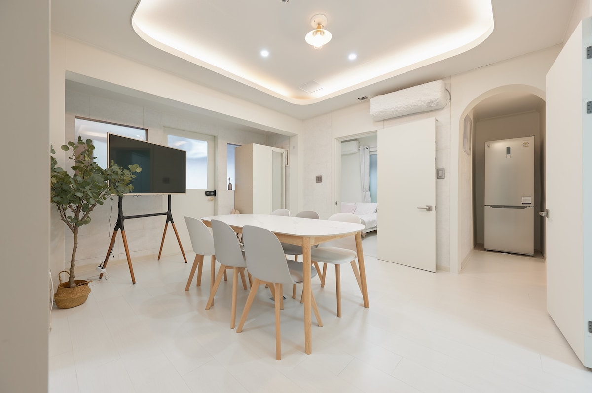 豪华公寓,距离弘大站3分钟(步行),3间客房,电动车,15分钟到明洞,大屏幕,合法住宿,行李寄存