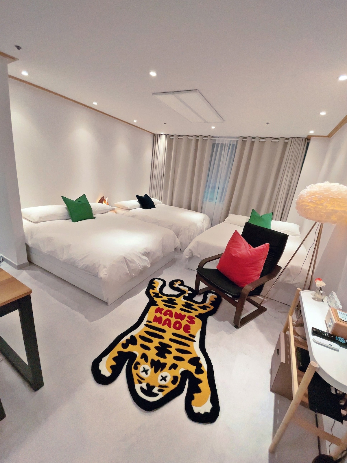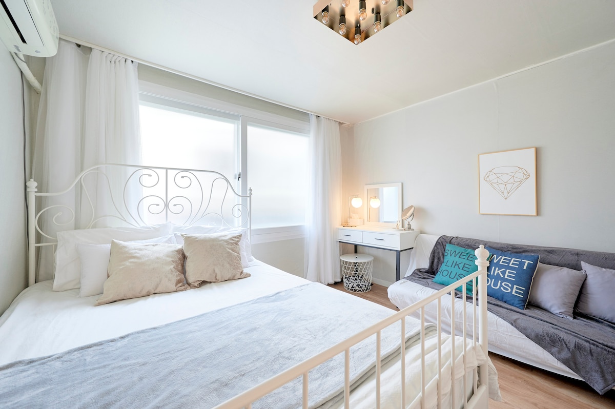 距离弘益大学站1分钟。 3张1.8米宽双人床。高速无线网络。【新开张】