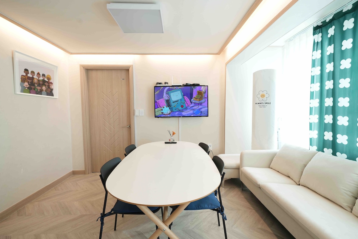 🤍 홍대의 조용한 골목에 자리한, 밖에 나가지 않아도 하루가 충분한 따뜻한 감성 하우스입니다. 디자이너가 조명·컬러·가구를 직접 디렉팅해 겨울에도 오래 머물고 싶어지는 부드러운 무드를 담았어요. 🤍 대형 빔프로젝터와 코타츠 테이블이 준비되어 있어 추운 날엔 외출 대신 영화 한 편과 함께 아늑한 밤을 보내기 좋아요. 2층 침대(프라이버시 분리)와 퀸 침대 구성으로 둘이 넉넉하게, 또는 소규모로 편안하게 머무실 수 있습니다. 🤍 홍대·신촌 도보 접근이 가능하면서도 밤에는 조용한 골목에 위치해 공연·전시 후에도 편하게 쉬실 수 있어요. 지하철·공항철도, 주요 관광지 이동도 편리하고 편의점은 도보 1분 거리입니다. 🤍 신축 건물의 깔끔함에 전문 청소 관리, 100% 순면 침구, 공기청정기까지 갖춰 겨울철 컨디션에 민감한 분들도 안심하고 머무를 수 있는 환경을 준비했습니다.