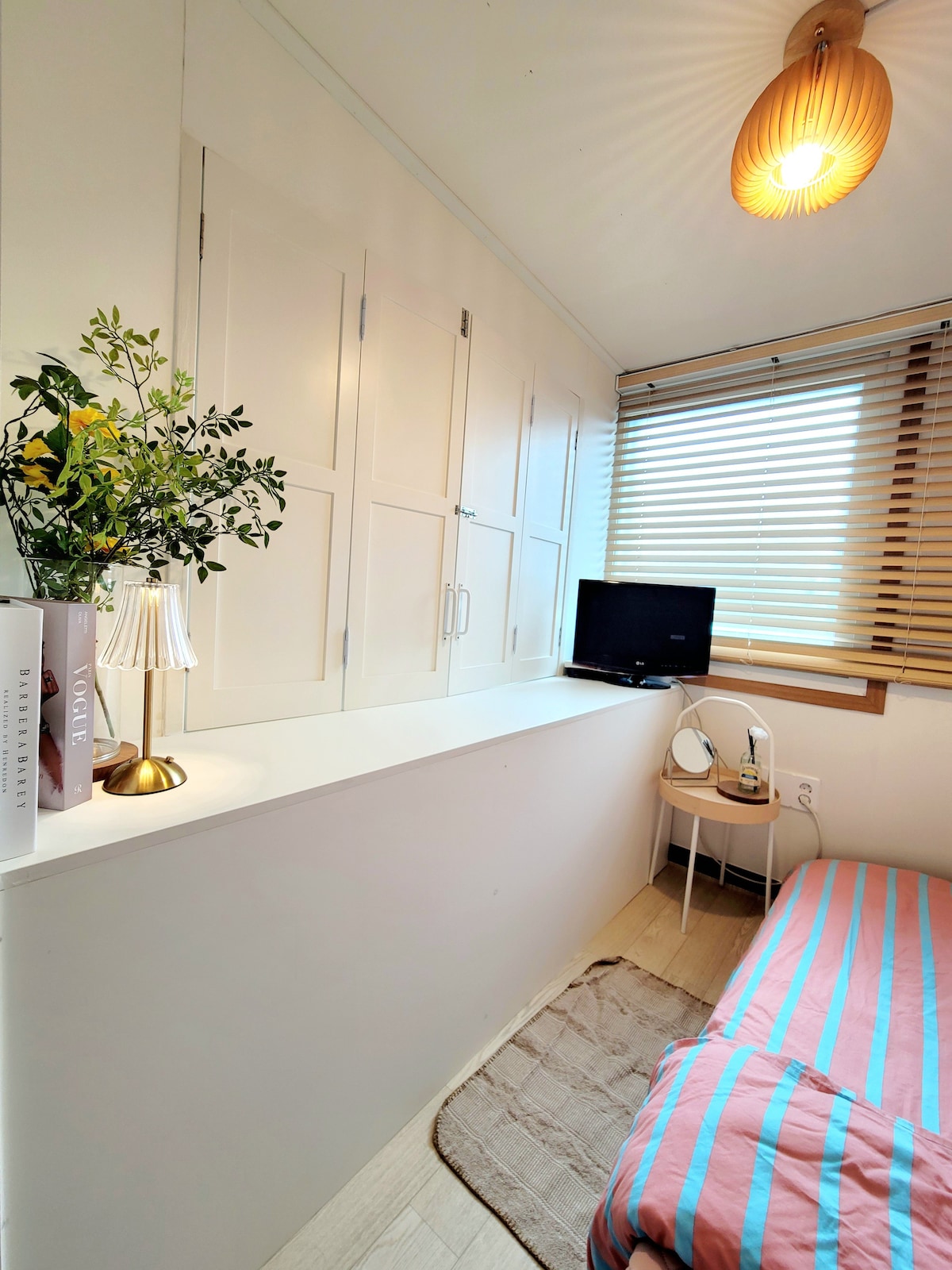 "Winter" concept Design(Modern, Tidy), 3 floor, fine Terrace view Recently, it is a remote-controlled building and it is equipped with hotel-level bedding and other environment Advantages of caustic ratio suitable for long-term accommodation This room is conveniently located on the first floor and has a warm and stable design, and it has a good view. TV, Refrigerator, Bathroom, Dressing table(mirror) etc (Special Common living place) Washing machine, Drying machine, Oven, Mineral water etc