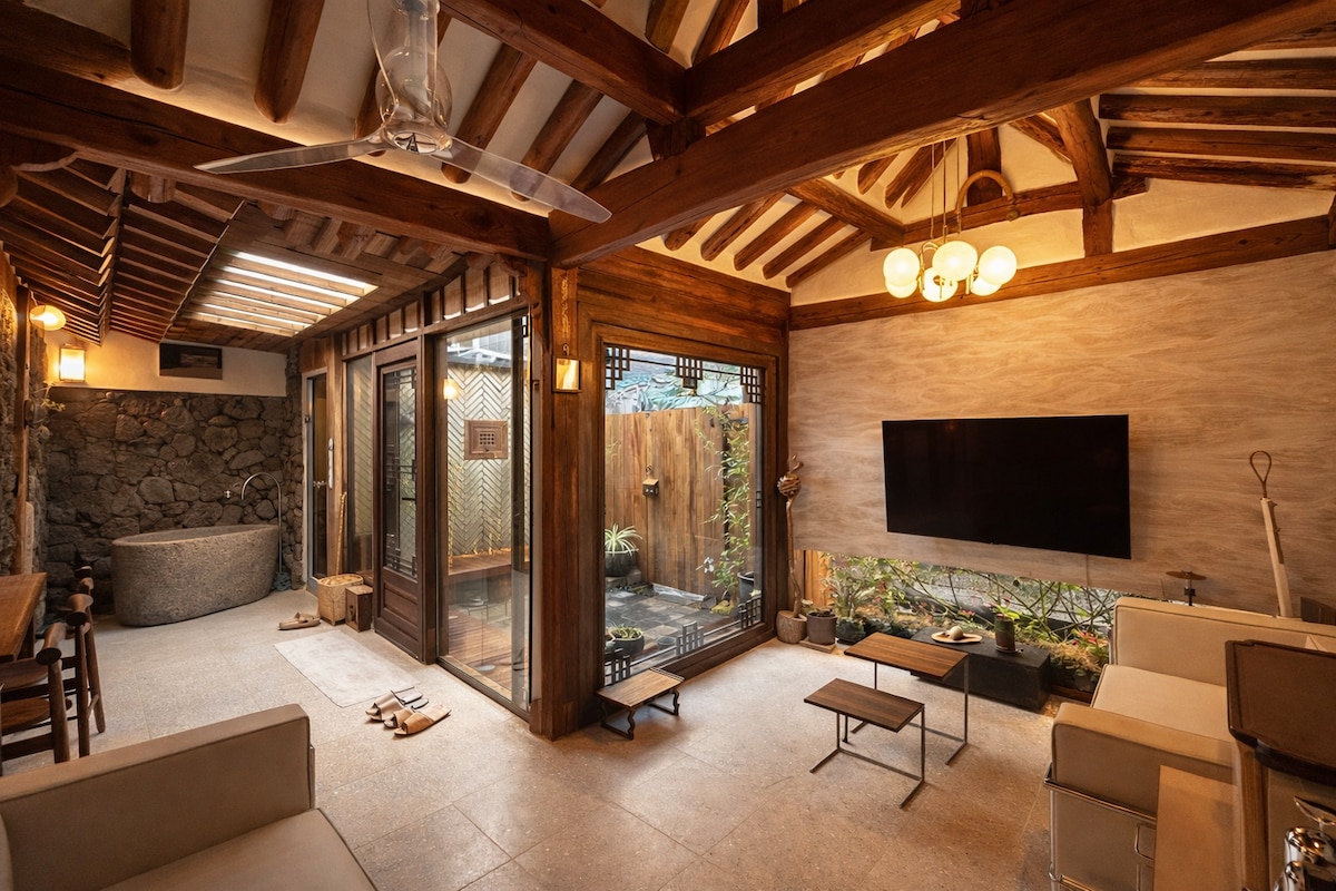 Gotaek (고택) means an old hanok, typically over 100 years old, The Classic-Goteak Seochon chosen by world-renowned artist Nicolas Party for a 6-week, and Filming locationn for famous Korean movie [Architecture 101]. A private luxury Hanok hotel with an outdoor jacuzzi, exclusively for one group, in the heart of Seoul. A stunning architectural gem preserving the charm of traditional Hanok while blending modern sophistication. Its rare loft-style design features state-of-the-art amenities