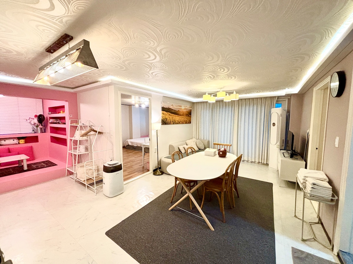 弘益大学站/电梯/宽敞的客厅/洗衣机、烘干机/时尚街/机场接送服务