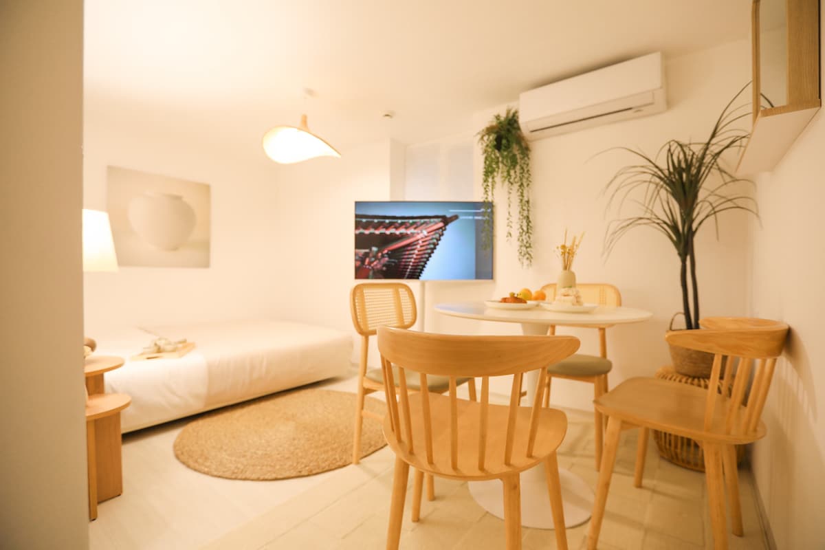 홍대 7번 출구에서 도보 1분. 조용한 골목 안, 파스텔빛 감성의 2룸 스테이 ONDa에 오신 걸 환영해요. 식물과 햇살이 함께하는 부엌, 커피 한 잔과 함께 하루를 시작할 수 있는 테이블, 편히 쉴 수 있는 따뜻한 침실이 준비되어 있어요. 세탁기/건조기, 스마트TV, 커피머신, 와이파이 완비 셀프 체크인 & 키패드 도어락 감성 셀카존 (벽걸이 그림과 테이블 코너) ONDa — 머물고 싶은 순간이 오는 곳!