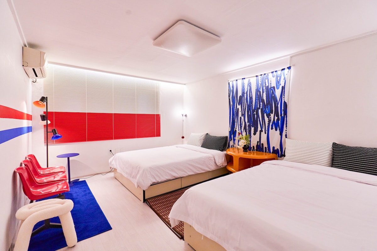 홍대 Life를 즐기며 편안히 지낼 수 있는 숙소입니다. • 2개의 침실에 각각 1개의 더블침대 (최대4인이 쾌적하게 생활할 수 있습니다) • 홍대역에서 7분거리 • 침대 2(더블) • 홍대정문에서 1분거리, 홍대거리 도보 1분 • 숙소건물내 편의점 • 숙소 와이파이 제공 2020년 부터 개인숙소 및 작업실로 운영하다가, 2024년 7월부터 다시 AIRBnB로 호스팅 시작합니다. *현재 실내장식이 과거사진과 약간의 차이가 있을 수 있습니다.