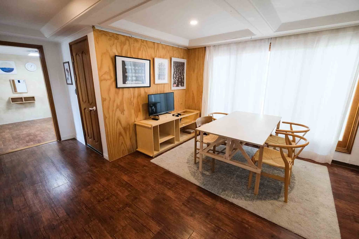 [3 间客房 + 2 间卫生间] 宽敞的客厅和卧室,距上水站 5 分钟,靠近弘大和汉江