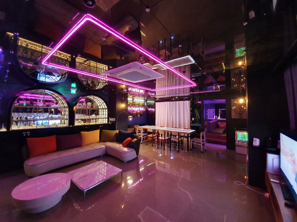 黑色卡拉OK 烧烤 出租房间 团体聚会 户外露台 露营地 弘大入口站3分钟 3分钟路程。