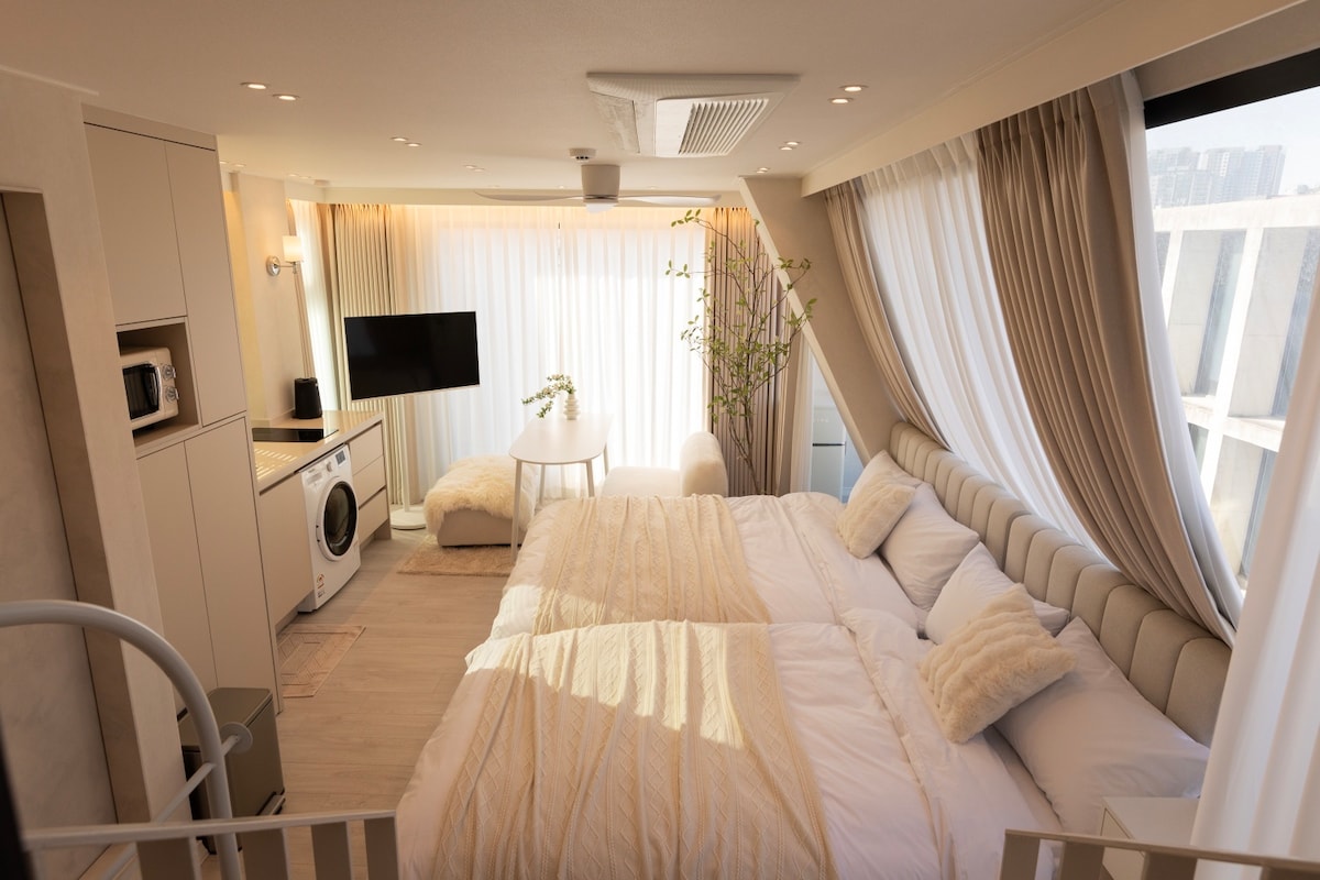 入住Amsa#距离Amsa站2分钟#韩国乐天大厦#Asan医院#KSPO#江南区#韩国乐天世界#机场接机 酒店床上用品床