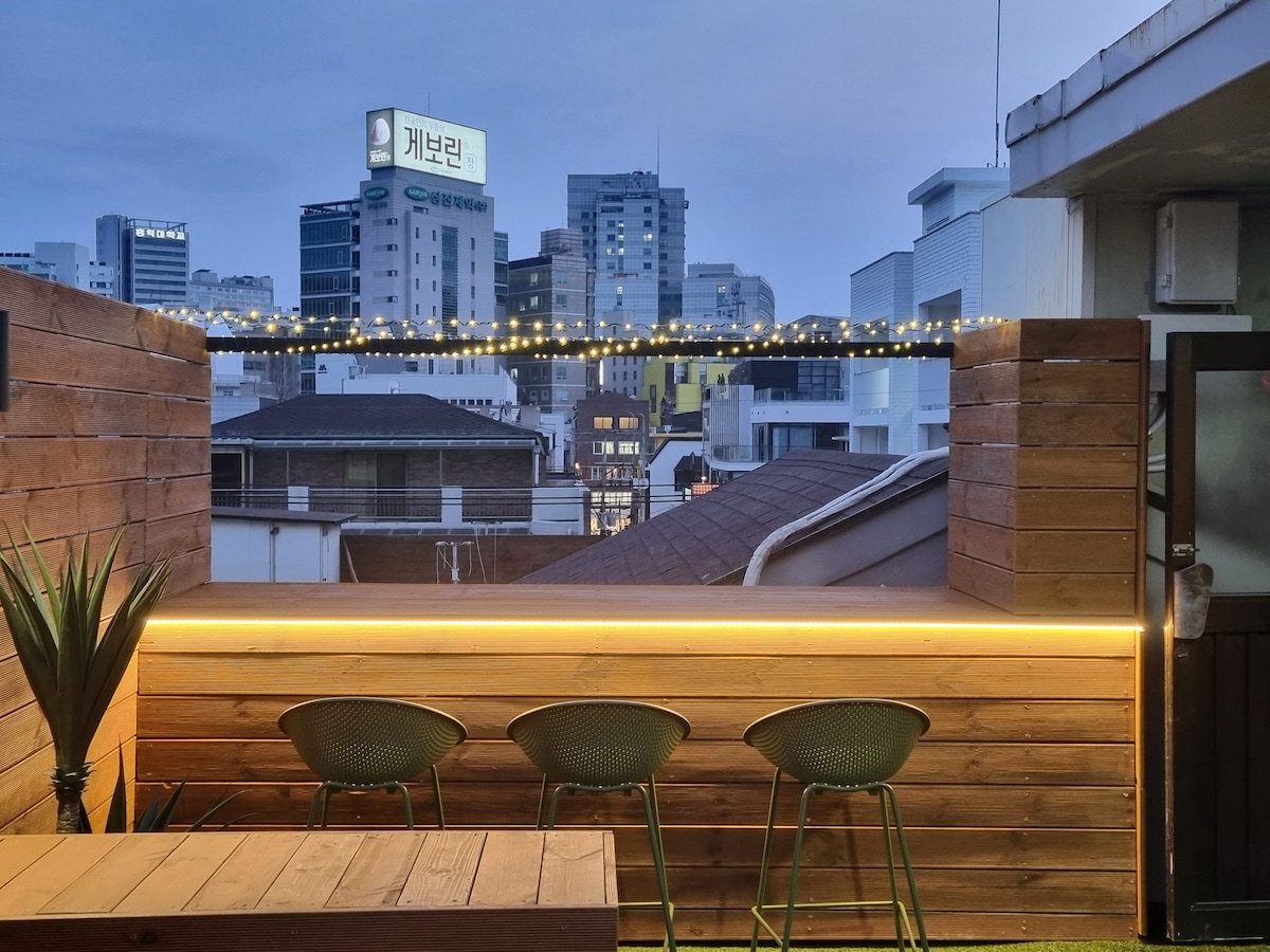 时尚住宿延南1号店 #距离弘大入口站5分钟路程 #舒适的咖啡厅 #感性的酒吧 #露台