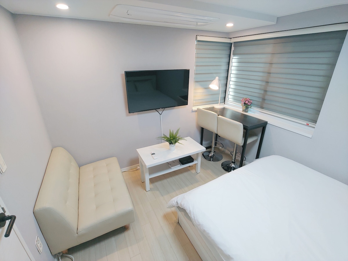 明亮的现代单间公寓@弘益大学站6号出口。