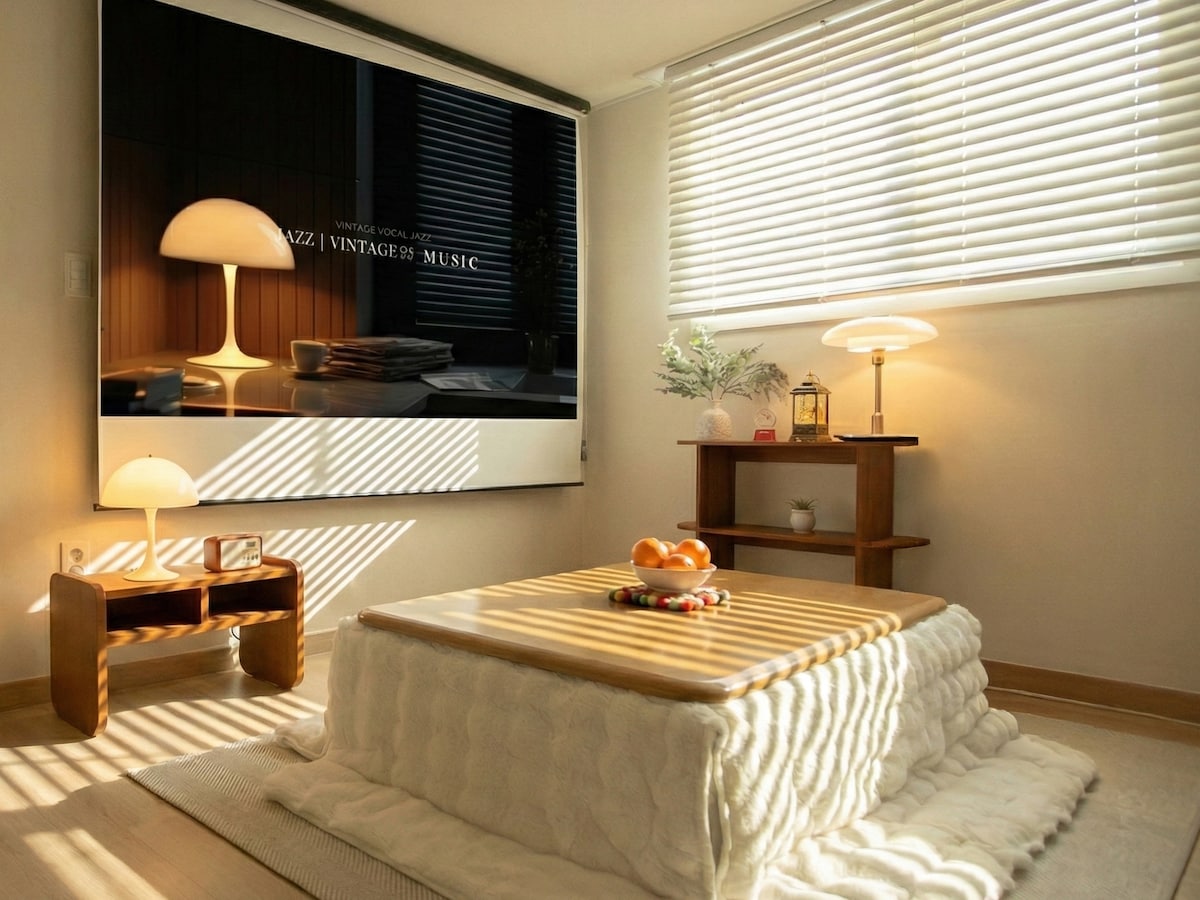 Experience the serene & cozy vibe of Under Cloud—a spacious 50m² home with two charming bedrooms, brick-finished living room, beautiful kitchen & bathroom, extra storage room, and a cozy balcony +hammock. In a quiet yet convenient area, offering easy access to Seoul’s best spots and the airport. Please click “Show more”. ☛ On foot Hongdae: 15min | Hapjeong Stn.(Line 2/6): 8min | 2 Malls: 5min ☛ By bus/subway Incheon Airport: 50min | Old Palaces: 30–40min | Myeong-dong: 30min | Gangnam: 40min