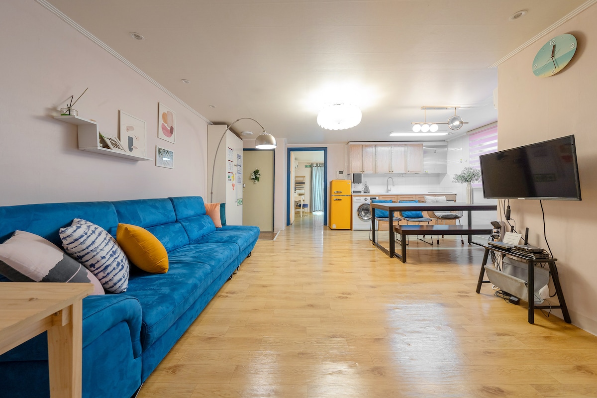5分钟到梨大站|宽敞的客厅·3卧1卫|免费行李寄存|弘大•明洞•DDP|7人