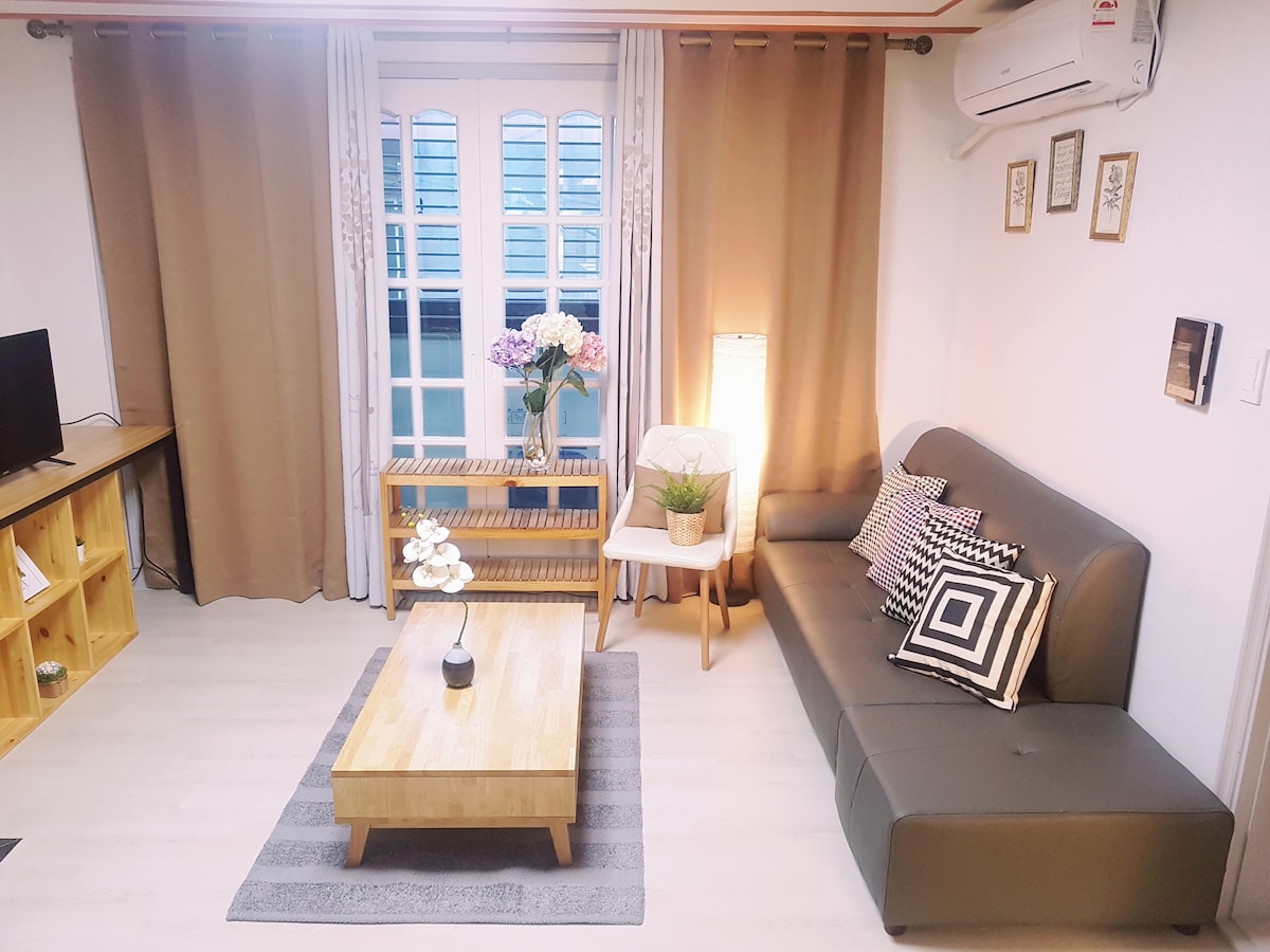 [3 间客房 + 2 间卫生间] 宽敞的客厅和卧室,距上水站 5 分钟,靠近弘大和汉江