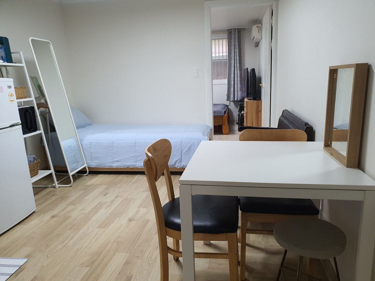 Located in 5~6 min From HongIk Sta & 7~9min From ShinChon Sat. 2min From Bus Sta(29 Bus lines)on the main Road By Walking. Very close for the action(Shopping,Touring & Enjoying Night Life) but Very quiet for a good night's rest.The room have a double bed,Private Bathroom, Private kitchen, Washing machine. Hi-Speed Internet/WiFi, Cable TV having 280Channels including English Speaking, A/C,Floor-Heating&Hot water Boiler Sys. There are two partios in the garden for resting including smoking table