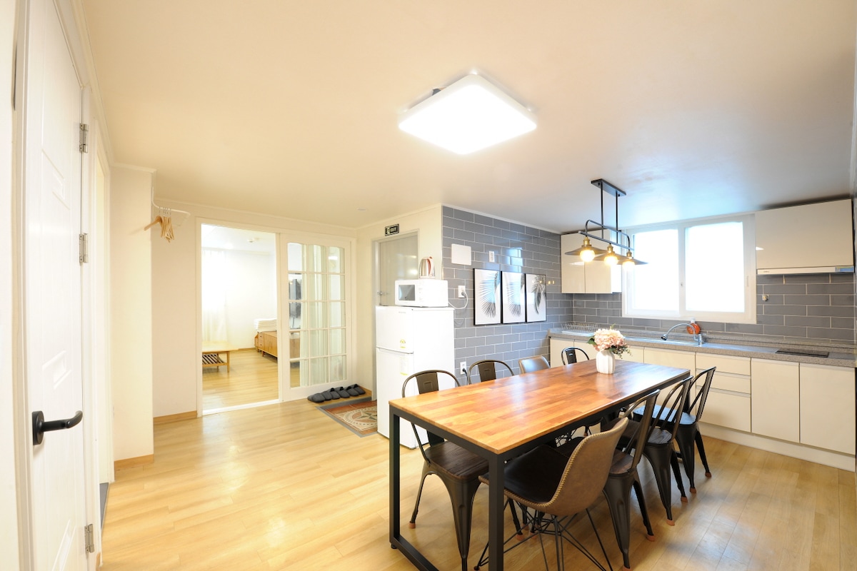 Hello!! Thank you for visiting 'Stay the Eeroom'! We hope you have a comfortable and enjoyable stay. 1. Just a 2 minute walk from Hongik Univ. Station Exit 1, which has an escalator. 2. A large elevator in the building ensures easy access. 3. Perfect for friends and family stays. 4. Separated bathroom and shower rooms for added convenience. 5. Free luggage storage available. 6. A community room lets you relax before check-in or after check-out without leaving the building. Enjoy your stay!