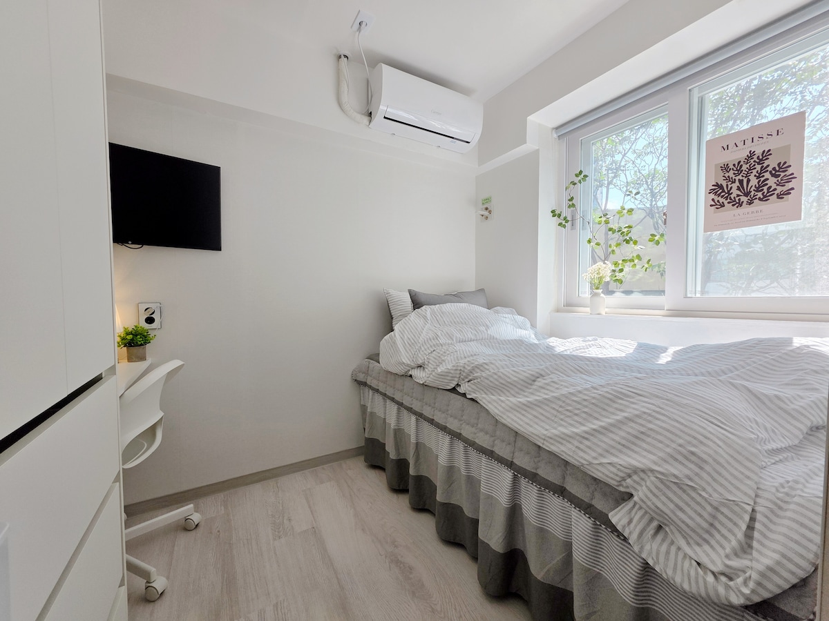 🏠 Pogn Hapjeong 포근 합정 *25년 open & 화장실 포함 전객실 리모델링 *호텔식 구조로 개인 객실 및 화장실 사용 / 창문 있음 *전객실 금연 (별도 흡연공간 3층 외부에 위치) *201호 1인 전용 객실 #위치 합정역 & 망원역 도보 7분 거리로 접근성이 매우 좋아요! 초등학교 바로 앞이라 조용하고 안전합니다 :) *도보기준* 홍대 중심가 15분 / yg엔터 9분 메가커피 1분 / 세븐일레븐 3분 / 올리브영 7분 망원시장 10분 / 망원한강공원 10분 📍홍대입구역 도보 20분 / 버스 8분 (추천🌟) *숙소 도보 1분거리 [성산초등학교입구] 정류장에서 271번 버스로 4정거장 (배차간격 6분) 📍인천공항에서 숙소까지 오는 법 [인천공항] ↔ [합정역] 6002번 공항버스 약 40분 소요 (환승X, 하루 71회 운행) 합정역 하차 후 도보 7분이면 숙소 도착